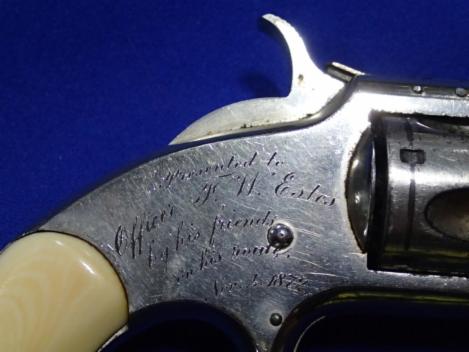 Before the 1880's if an officer wanted to carry a gun they normally bought their own. Often they would have one given or presented to them by friends or in the case of Officer Estes presented to him by the people on his route. We don't know if it was due to something he did, or out of respect for him. The gun was engraved when it was presented to him.
